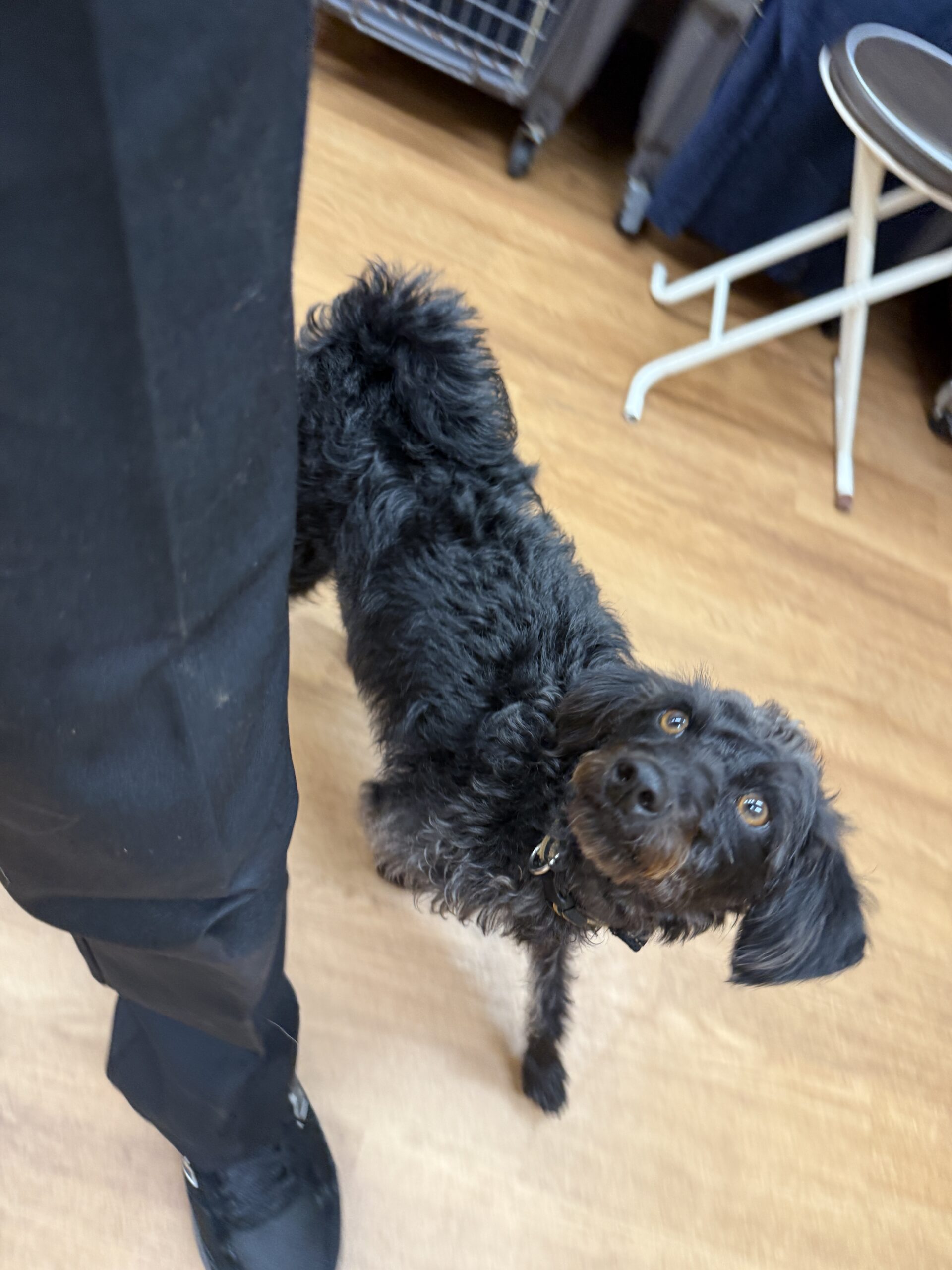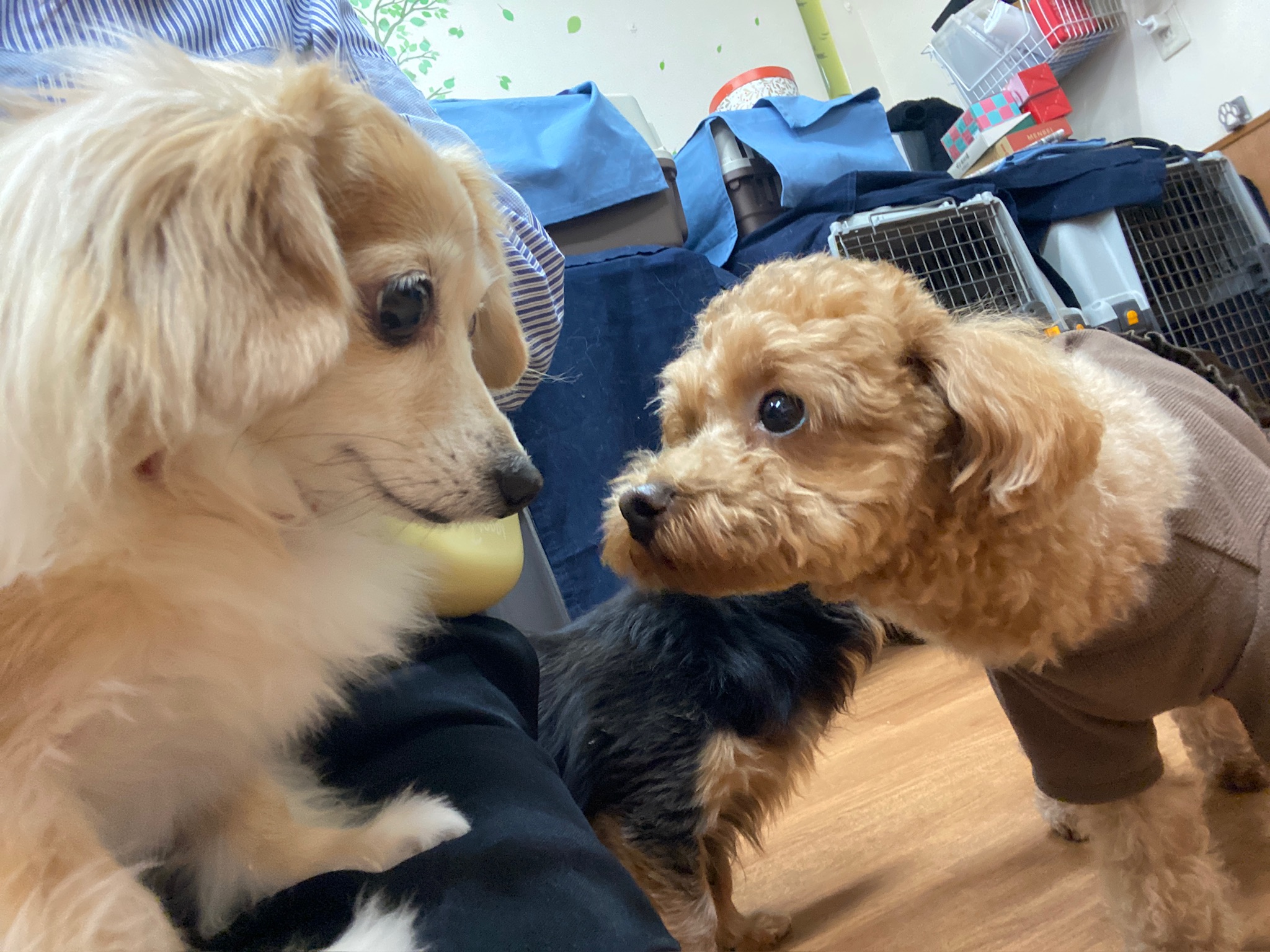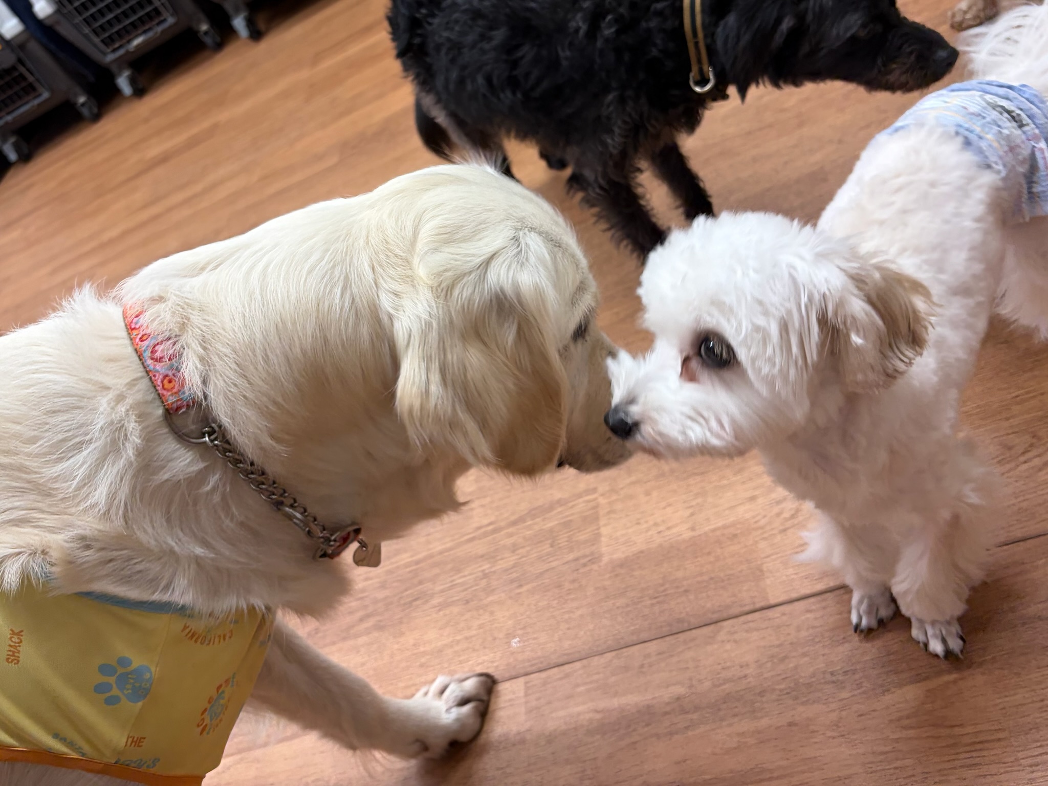 小麦はスタッフの膝からみんなとご挨拶!