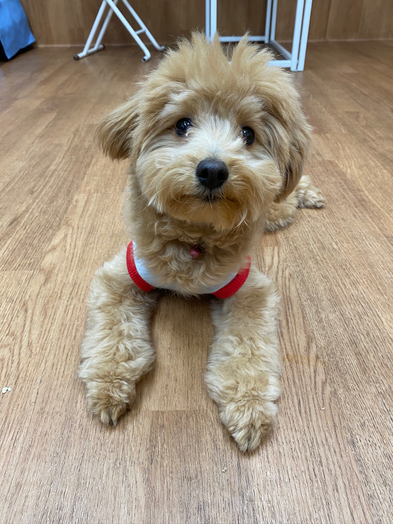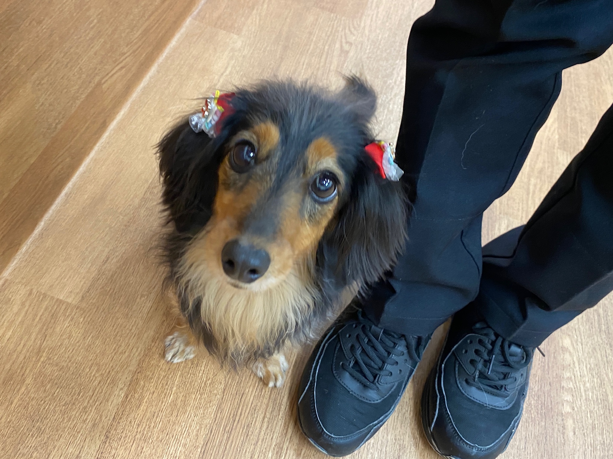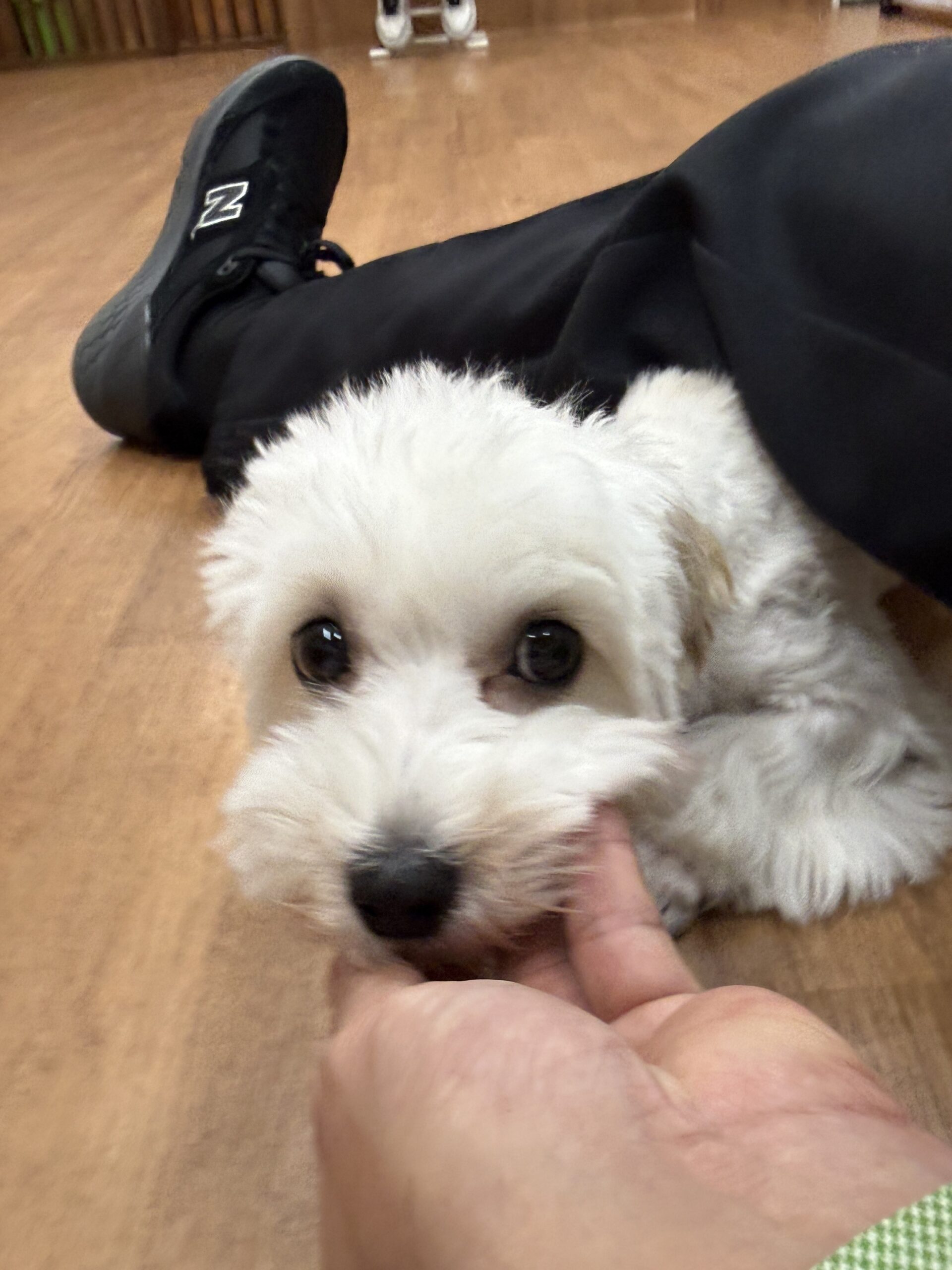 小麦はスタッフの膝からみんなとご挨拶!